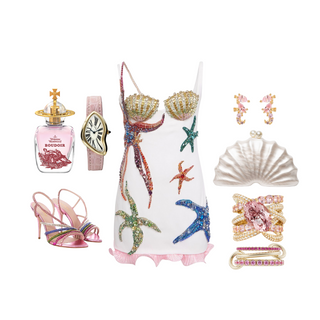 With beaded shells, sparkling starfishes, and a playful silhouette, this dress is for the girls who bring magic to every beachside bar. She’s cheeky, opulent, and unmistakably her.